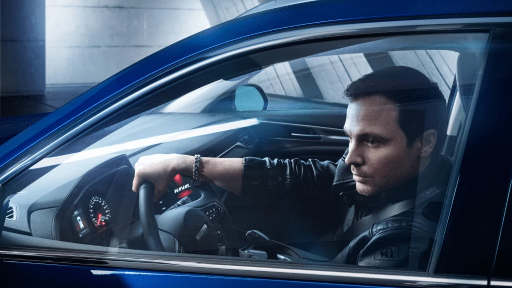На фото: актер Алексей Чадов за рулем Haval F7 в рекламном ролике.