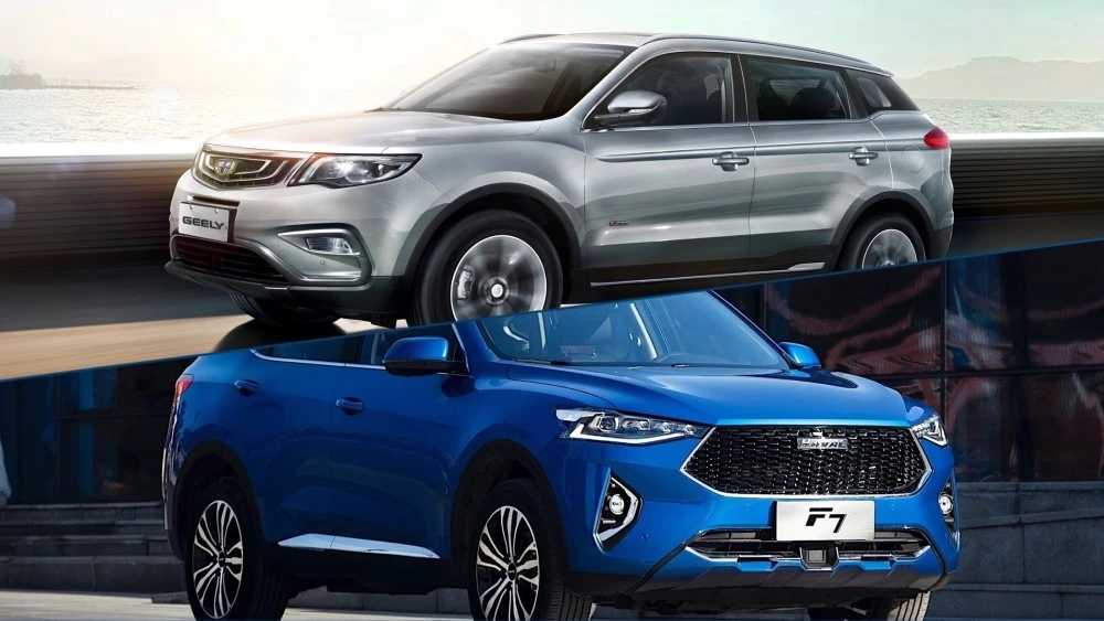 На коллаже: Geely Atlas и Haval F7.