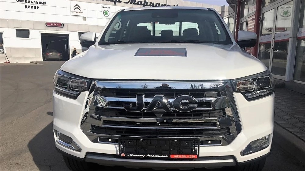 На фото: пикап JAC T8 у дилерского центра в украинском городе Мариуполь.