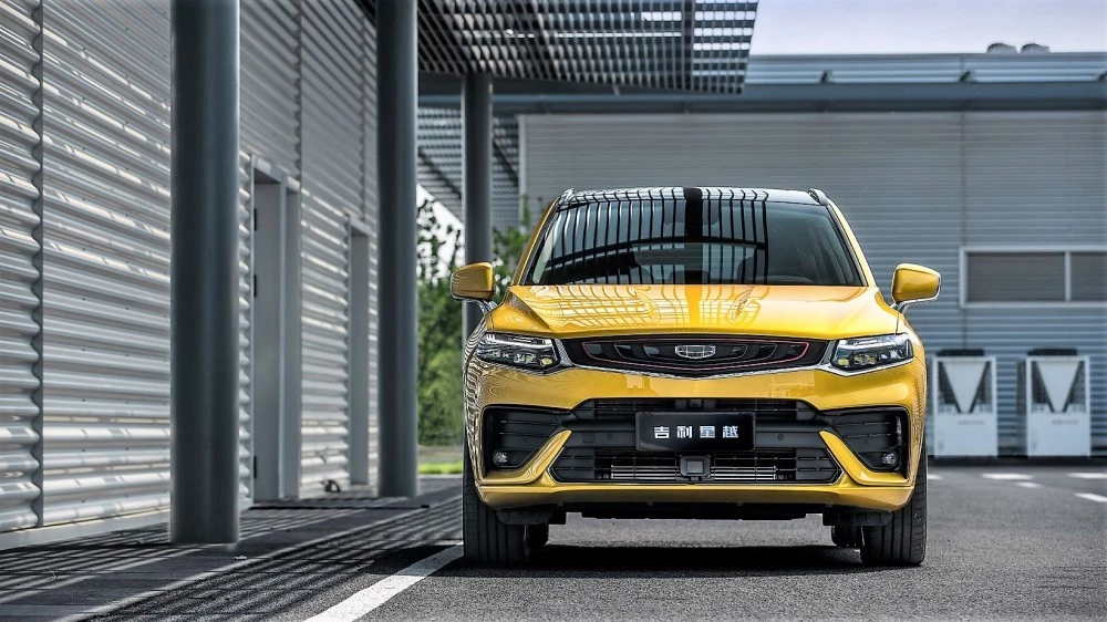 На фото белорусского «Джили-клуба»: Geely Tugella красного цвета на территории завода «БелДжи».