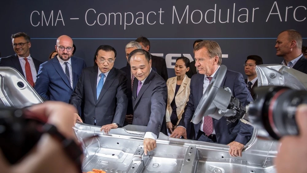 На фото: 2017 год, владелец Geely Ли Шуфу и глава Volvo Cars Хокан Самуэльссон (крайние справа) в компании председателя Евросовета Шарля Мишеля и премьер-министра КНР Ли Кэцяна.