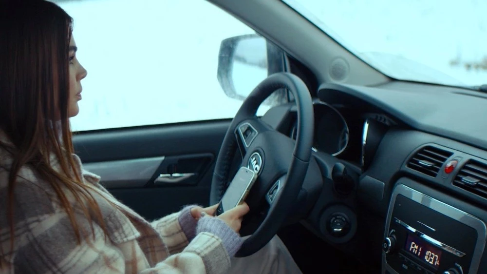 На скриншоте с видео: салон пикапа JAC T6, на котором уезжает героиня музыкального клипа