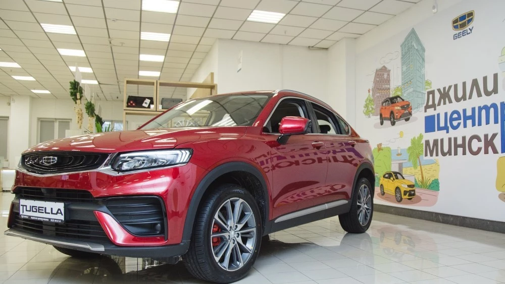 На фото: кроссовер Geely Tugella в дилерском центре компании в Минске