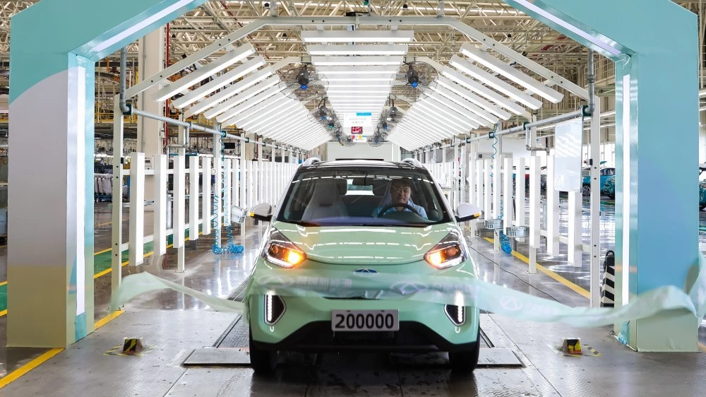 На фото: 200-тысячный электромобиль Chery Little Ant (EQ1) сходит с конвейера