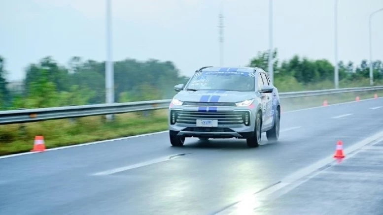 На фото: в этом испытании Exeed TXL должен был разогнаться и затормозить в огромной луже