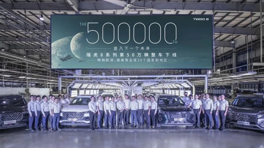 С конвейера завода Chery в городе Уху сошел 500-тысячный кроссовер серии Tiggo 8. Им стала гибридная модель Tiggo 8 Plus Kunpeng e+.