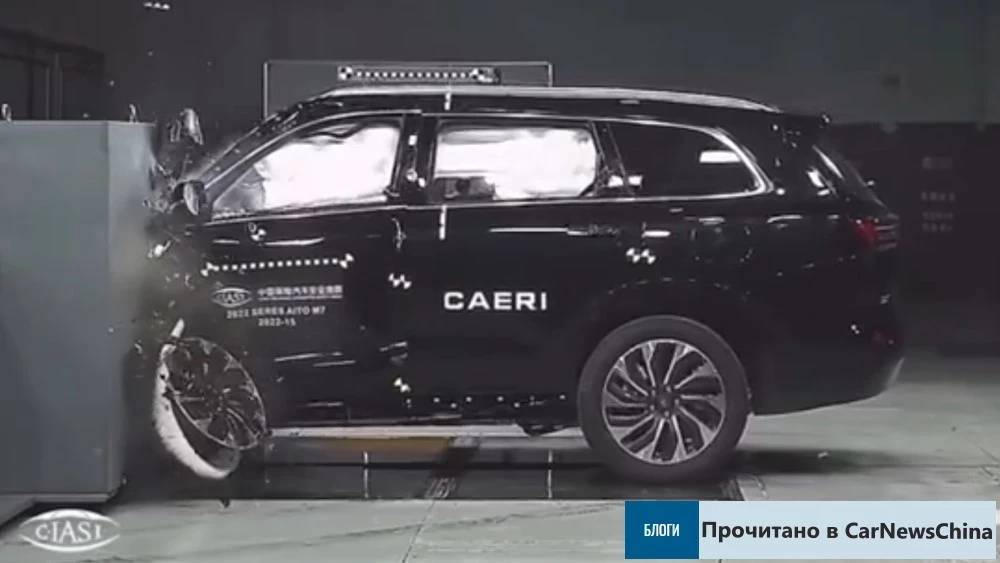 На скриншоте с видео C-IASI: краш-тест AITO M7 показал слабости этого кроссовера