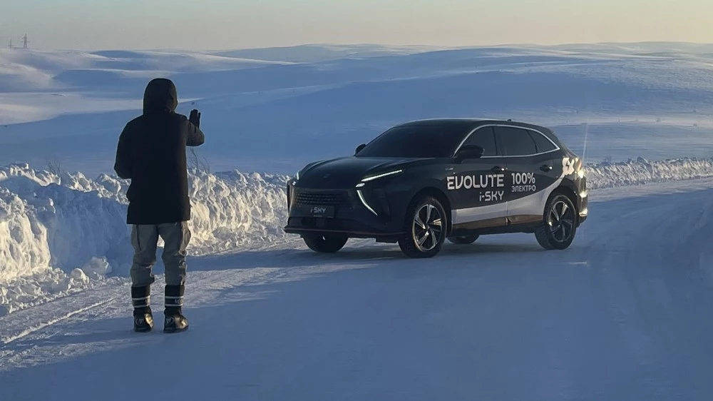 На фото motor.ru: электрический кроссовер Evolute i-SKY на Крайнем Севере