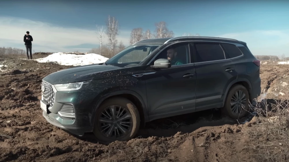 С неудачной прошивкой обновленный Chery Tiggo 8 Pro Max с полным приводом может не справиться даже с легким бездорожьем / скриншот с видео