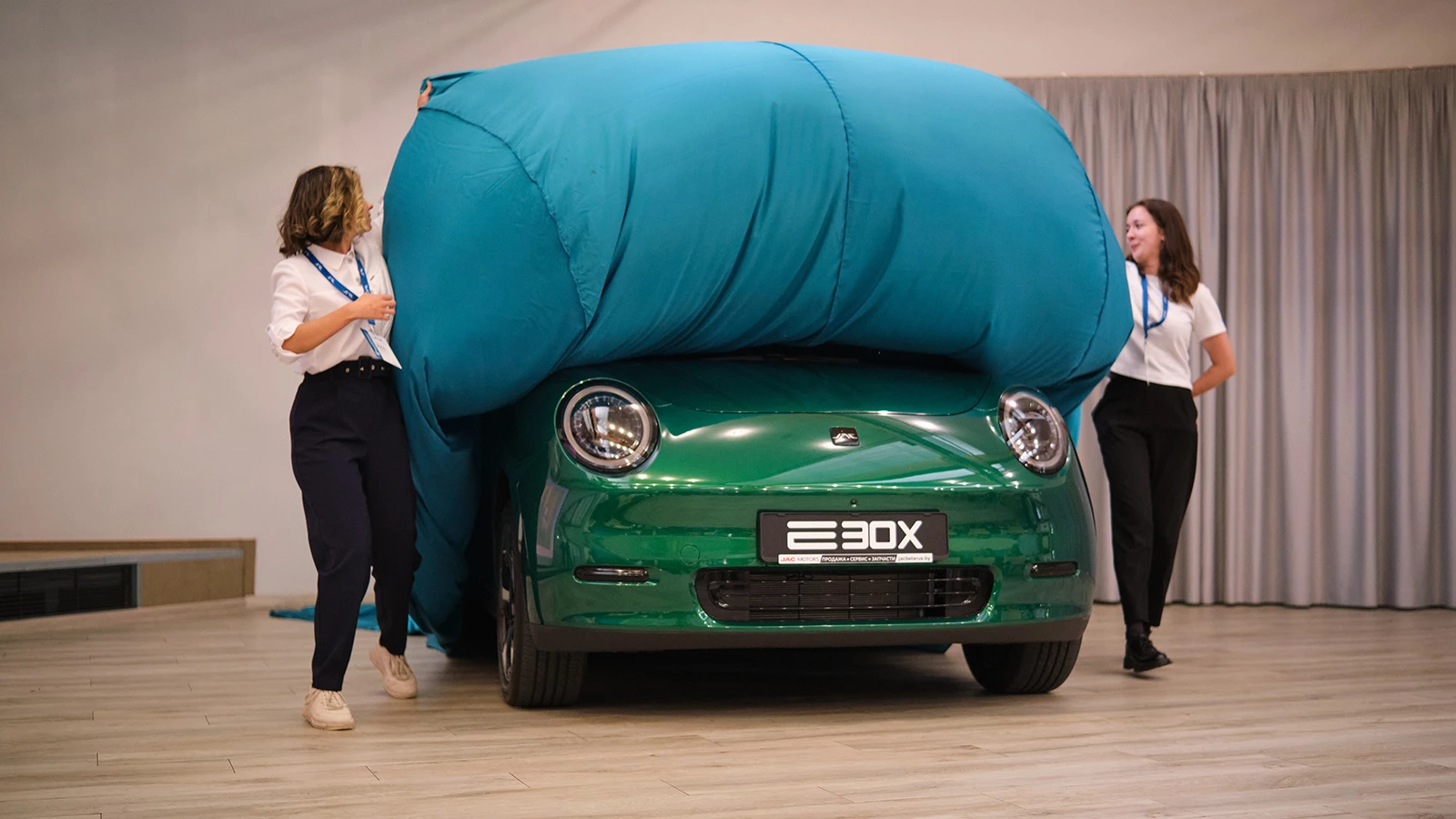 Фрагмент презентации электрокара JAC E30X в Беларуси