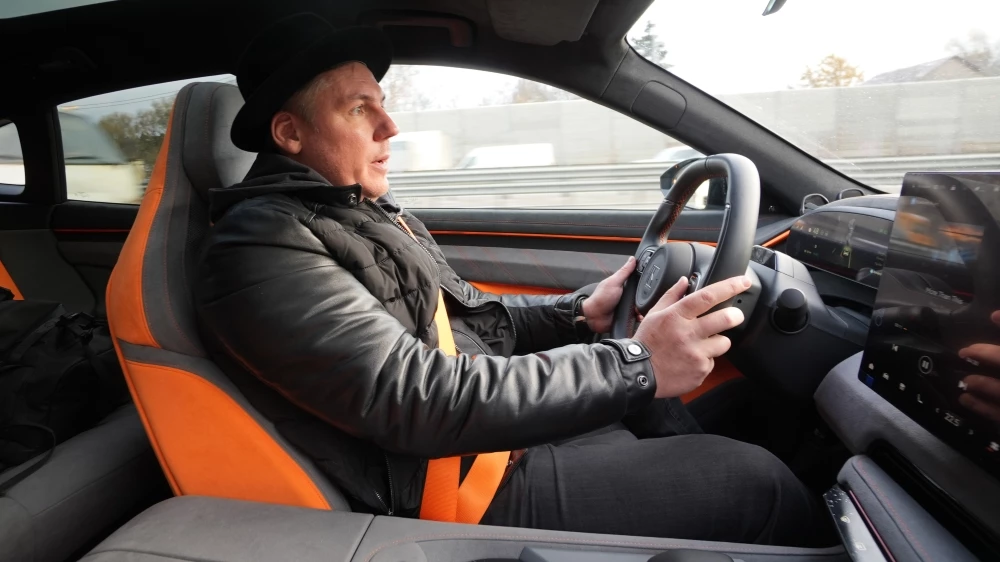 Антон Архипов в шляпе за рулем китайской «Панамы» - Zeekr 001