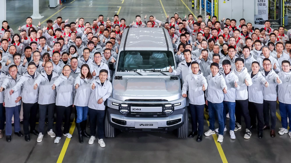 Массовое производство кроссовера iCar V23 запустили на заводе Chery в Уху, родном городе концерна. Выпуск первого серийного экземпляра символично отметили прямо на фабрике. Команда заводских работников сфотографировалась с автомобилем. Интересно, что на баннере номер модели указали как «0,000,001». Словно компания настроена произвести не менее 1 млн таких автомобилей.