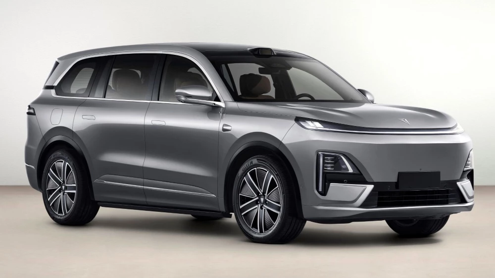 У Deepal S09 нет традиционной радиаторной решётки. Её функцию выполняет небольшой воздухозаборник в переднем бампере. А глухая передняя панель придаёт модели сходство с электрокаром. К другим особенностям кроссовера можно отнести выдвижные ручки на дверях, сенсор LiDAR на крыше и единый элемент заднего фонаря на двери багажника.