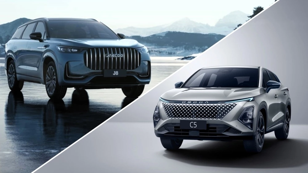 В 2025 году в Казахстане появятся кроссоверы Jaecoo J8 и новый Omoda C5 / фотоколлаж «Китайских автомобилей»