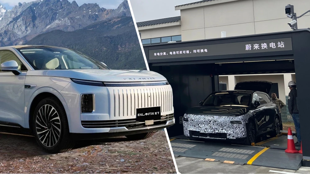 Автомобили Exlantix получат технологию смены батарей от Nio / фотоколлаж «Китайских автомобилей»
