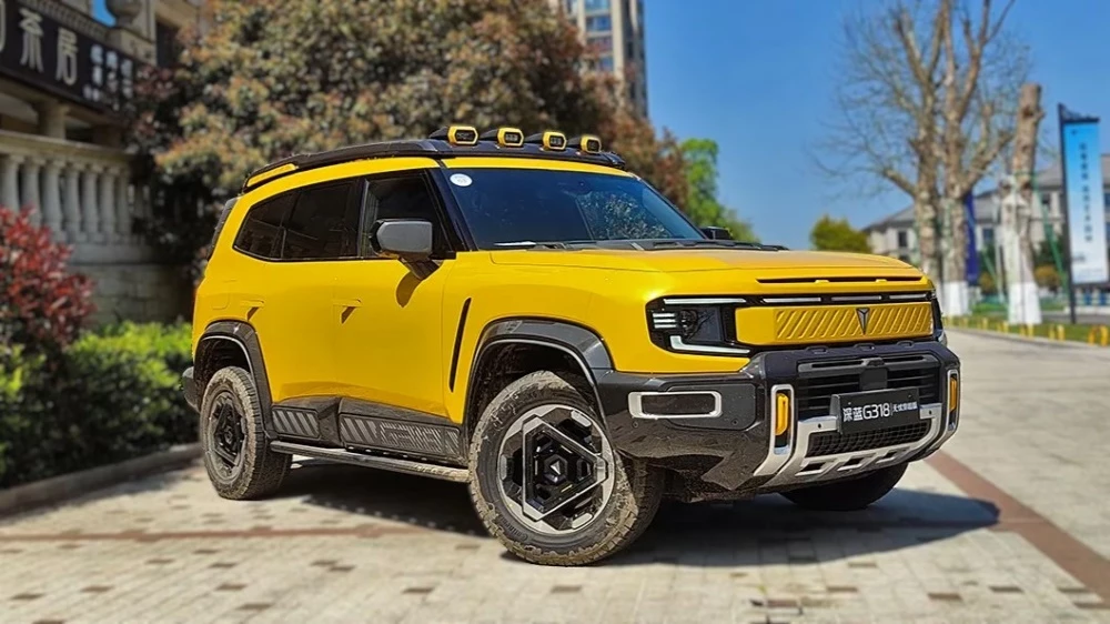 При этом, несмотря на суровый внешний вид с преобладанием прямых форм, наличие пластикового обвеса, металлических порогов и запасного колеса на двери багажника, Deepal G318 представляет собой кроссовер с несущим кузовом, по аналогии с Jetour T2.